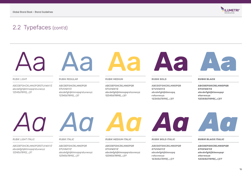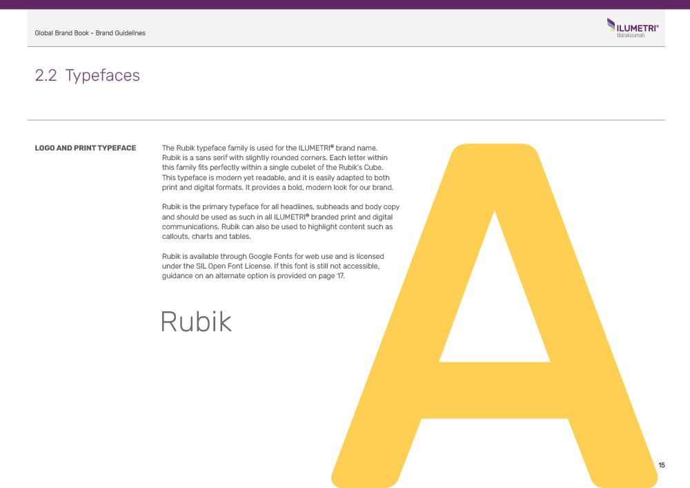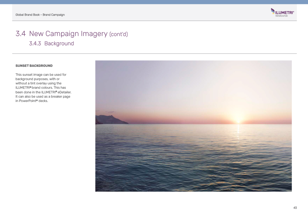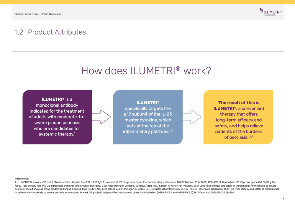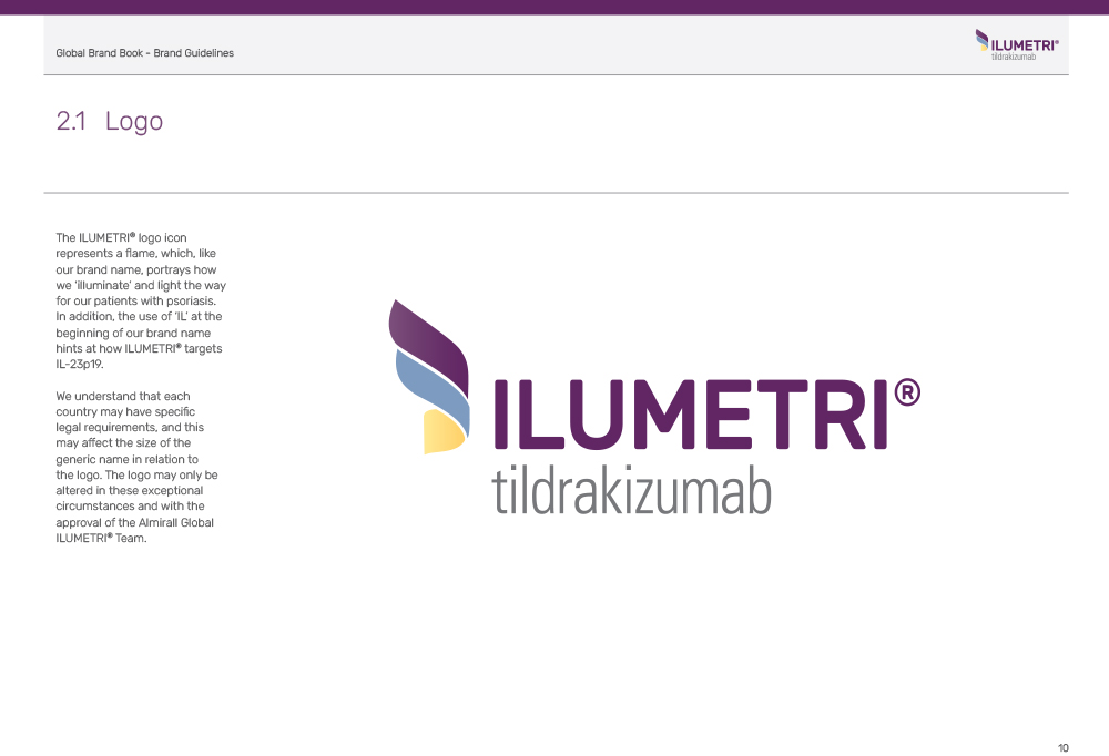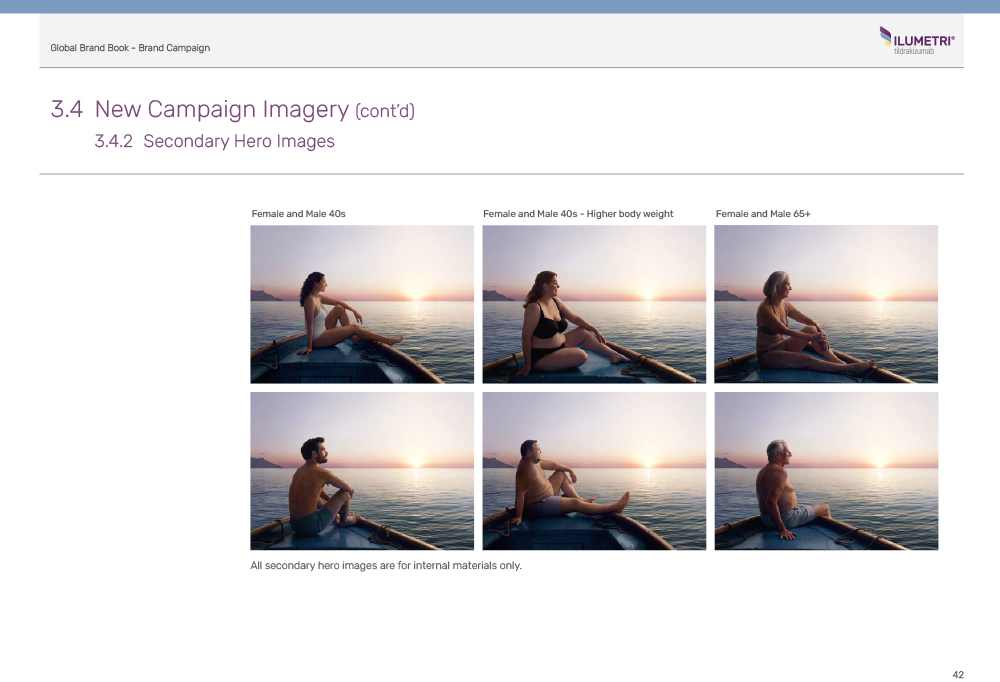 A global brandbook showcasing the Ilumetri brand story, campaign, secondary campaign images and all other assets that can be utilised when creating materials to represent the brand.